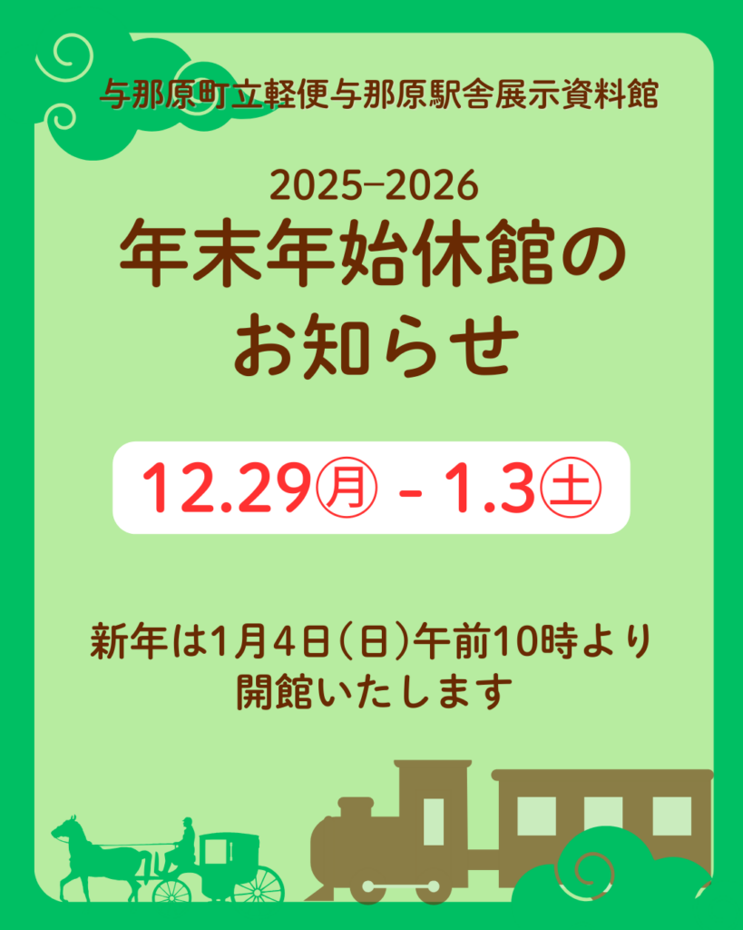 年末年始休館のお知らせ2025年もたくさんの方にお越しいただきありがとうございました。年内は12月28日(日)まで開館しております。ぜひ立ち寄りください。2025年12月29日から2026年1月3日まで年末年始の休館となります。そ… -