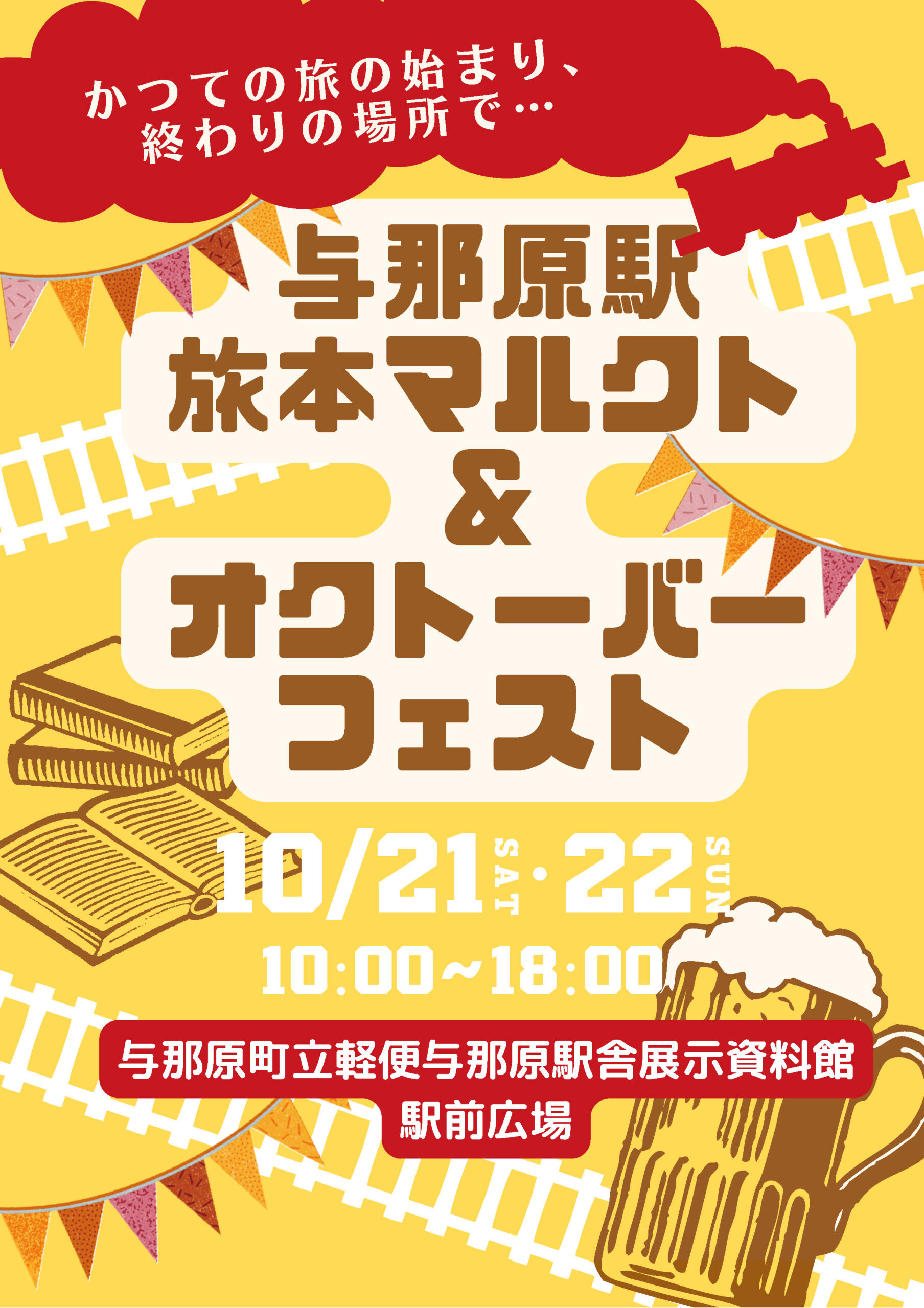 かつて沖縄県鉄道与那原線の終点だった与那原駅。旅の始まり/終わりとなる駅舎で、旅や乗り物をテーマにした古本市を開催します(出店/波止場書房)。また、1914年(大正3)の県鉄開通式でビアホールの出店があったことや機関車がドイツ製だったことにちなみ、駅前広場でクラフトビールが飲めるオクトーバーフェストも同時開催します。