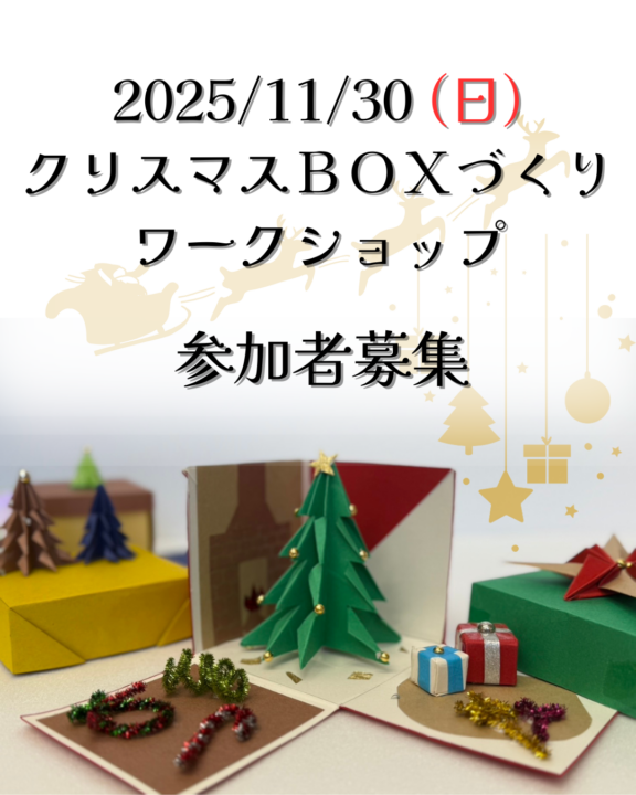 基本の箱、木、星飾りなどの作り方を説明をした後は、自由なデコレーションでボックスづくりを楽しんでいただきます。